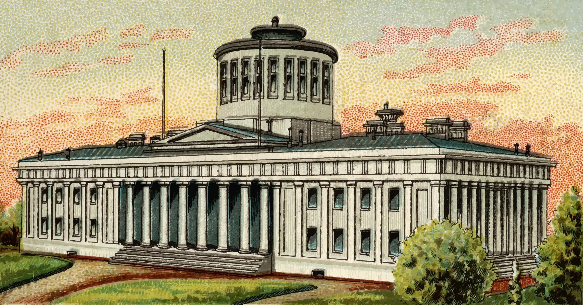 One of the "General Government and State Capitol Buildings" series of cigarette cards from Allen & Ginter, late 1800s. Due to their age I have done a little restoration where needed and also cropped them to just the picture, adjusted contrast, brightness and colour saturation. The originals can be found on the New York Metropolitan Museum of Art web site.