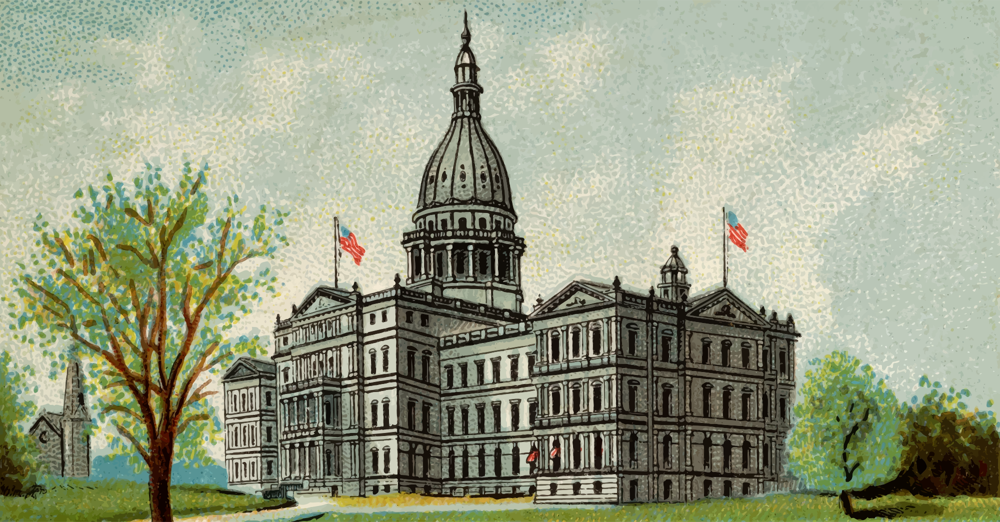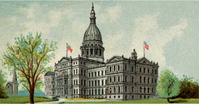 - Allen card cigarette collectable Ginter tobacco trade card trading vintage United States U.S. US America American state government building architecture legislature house capitol state house statehouse Michigan Lansing