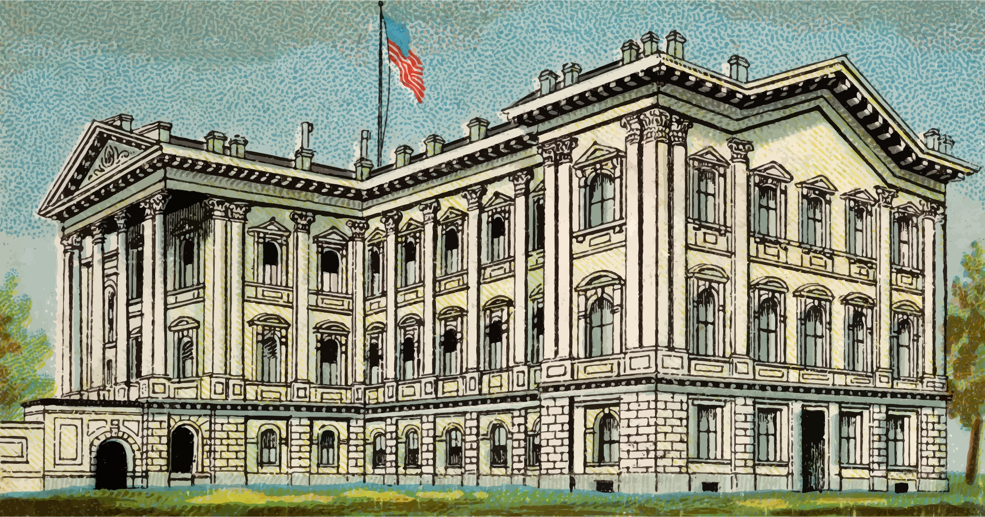 One of the "General Government and State Capitol Buildings" series of cigarette cards from Allen & Ginter, late 1800s. Due to their age I have done a little restoration where needed and also cropped them to just the picture, adjusted contrast, brightness and colour saturation. The originals can be found on the New York Metropolitan Museum of Art web site.