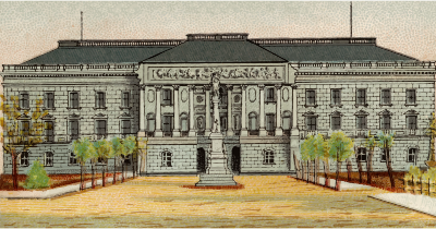 One of the "General Government and State Capitol Buildings" series of cigarette cards from Allen & Ginter, late 1800s. Due to their age I have done a little restoration where needed and also cropped them to just the picture, adjusted contrast, brightness and colour saturation. The originals can be found on the New York Metropolitan Museum of Art web site.