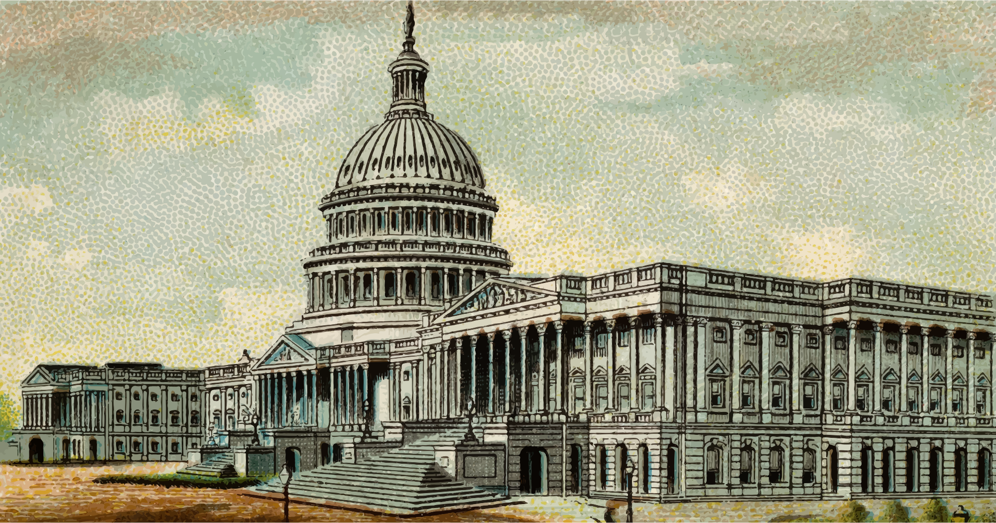One of the "General Government and State Capitol Buildings" series of cigarette cards from Allen & Ginter, late 1800s. Due to their age I have done a little restoration where needed and also cropped them to just the picture, adjusted contrast, brightness and colour saturation. The originals can be found on the New York Metropolitan Museum of Art web site.