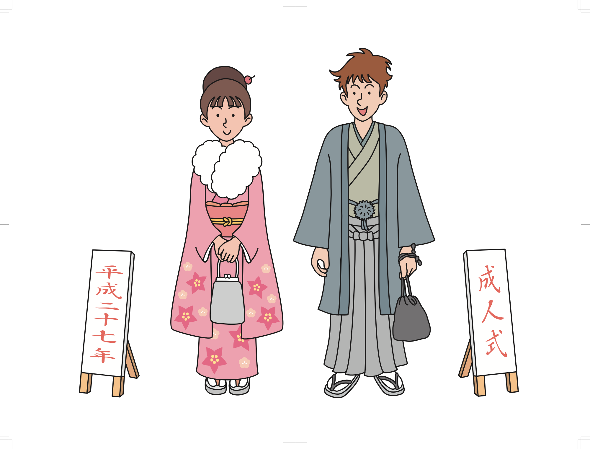 - 20 adult adulthood age boy ceremony Comic characters female girl January Japan Japanese JMC kimono lady majority male man seijinshiki twenty woman young 成人式