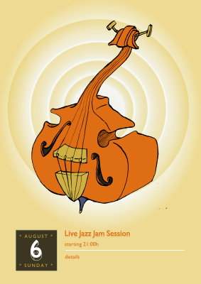 A template for a jam session poster featuring a funky double bass.