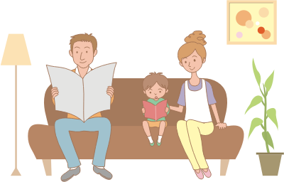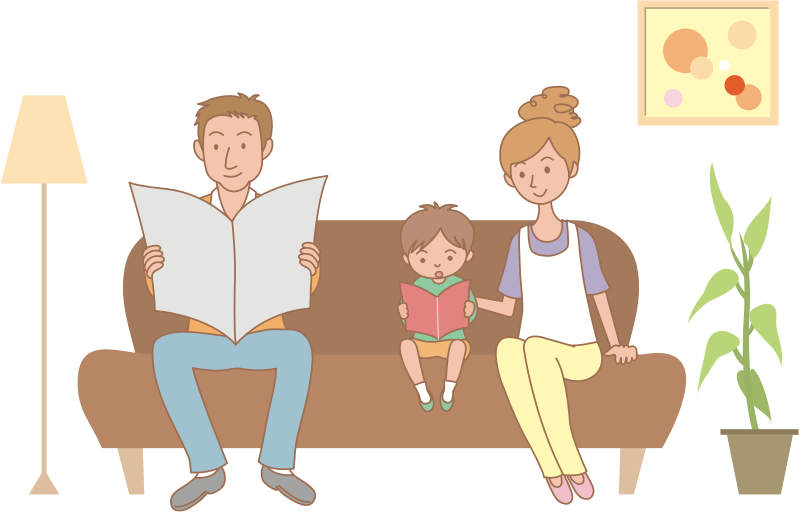 - chesterfield child Comic characters couch family father Food living mother people - cartoon - cute reading room sit sitting sofa