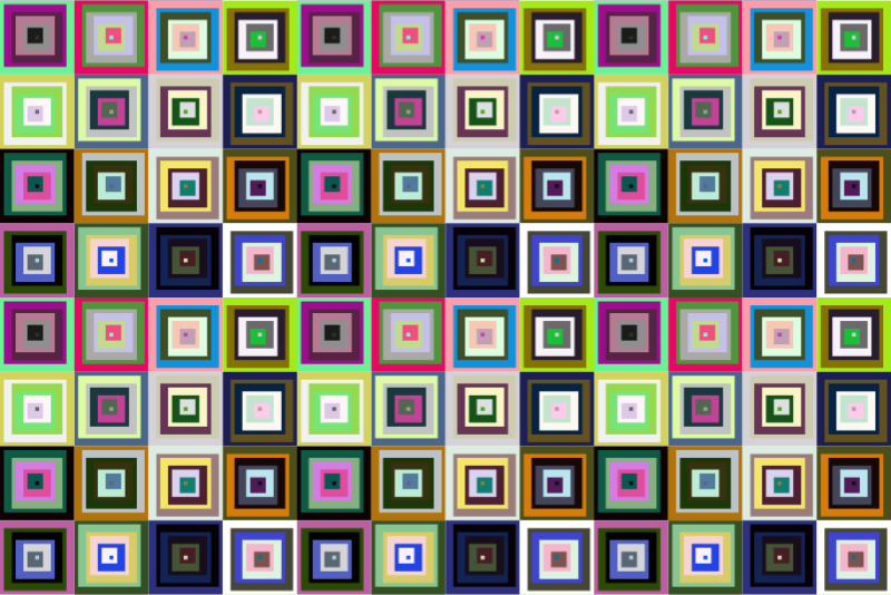 A seamless pattern formed from a square tile. The tile can be retrieved by selecting the rectangle in Inkscape and using shift-alt-I. A version of the original with random colours