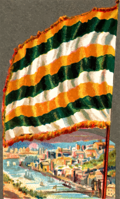 One of the "City Flags" series of cigarette cards from Allen & Ginter, 1887. I'm uploading all 50 of them over the next few weeks. Due to their age I have done a little restoration where needed and also cropped them to just the picture, adjusted contrast, brightness and colour saturation. The originals can be found on the New York Metropolitan Museum of Art web site.