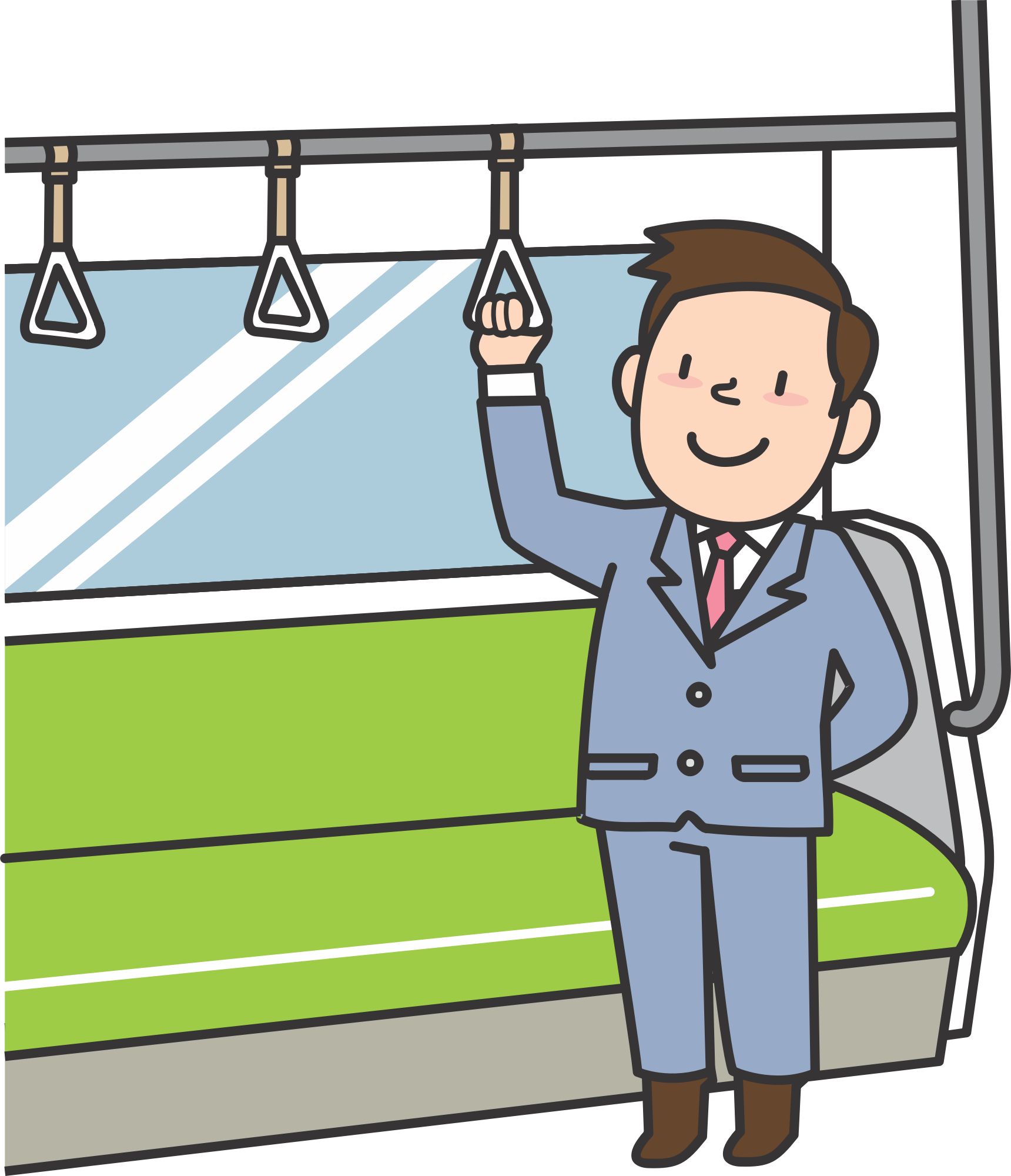 - businessman salary business office employee commuter transit Comic characters male man standing subway suit tie train transportation
