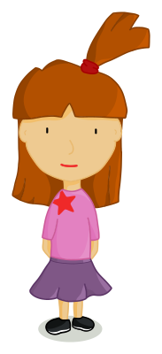 A quiet girl wearing a pink top and a purple skirt.Fille calme portant un haut rose et une jupe violette.