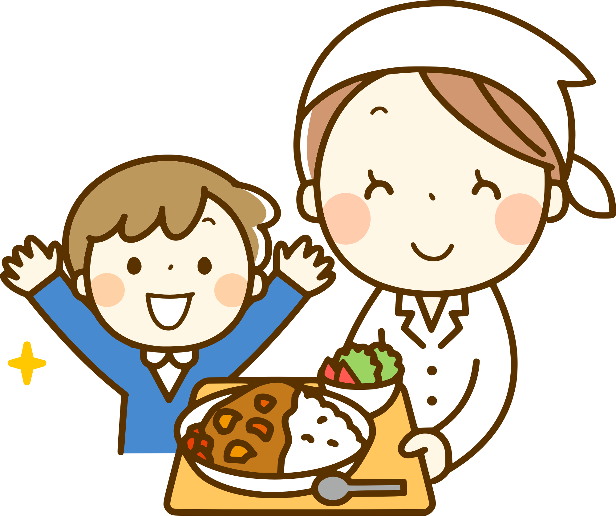 - boy cafeteria cartoon chef child Comic Comic characters cook cuisine curry dietician female food gravy Japan Japanese lady male meat mother Nice Art rice sauce serve son spicy tray vegetables woman