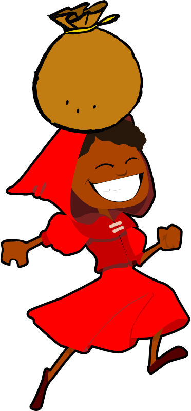 - remix+163771 remix+5454 fairy tale little red riding hood petite chaperon rouge Rotkäppchen Africa African girl happy sack bag transport jump red dress cape