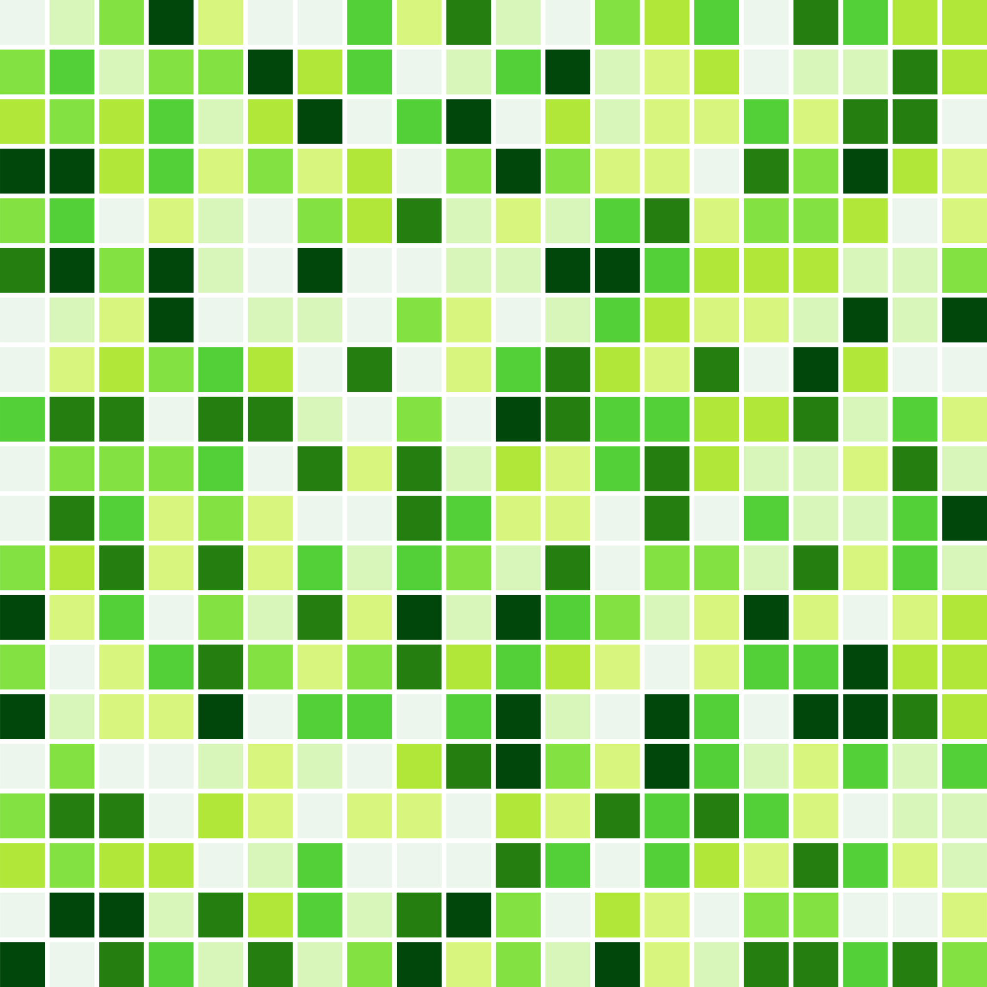 A grid of squares with green colours. Since the colours are randomly distributed it is automatically seamless