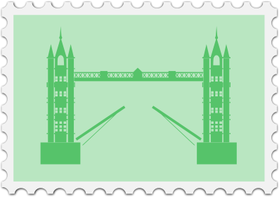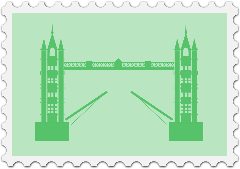 A stamp with an English theme. The bridge is from Pixabay.