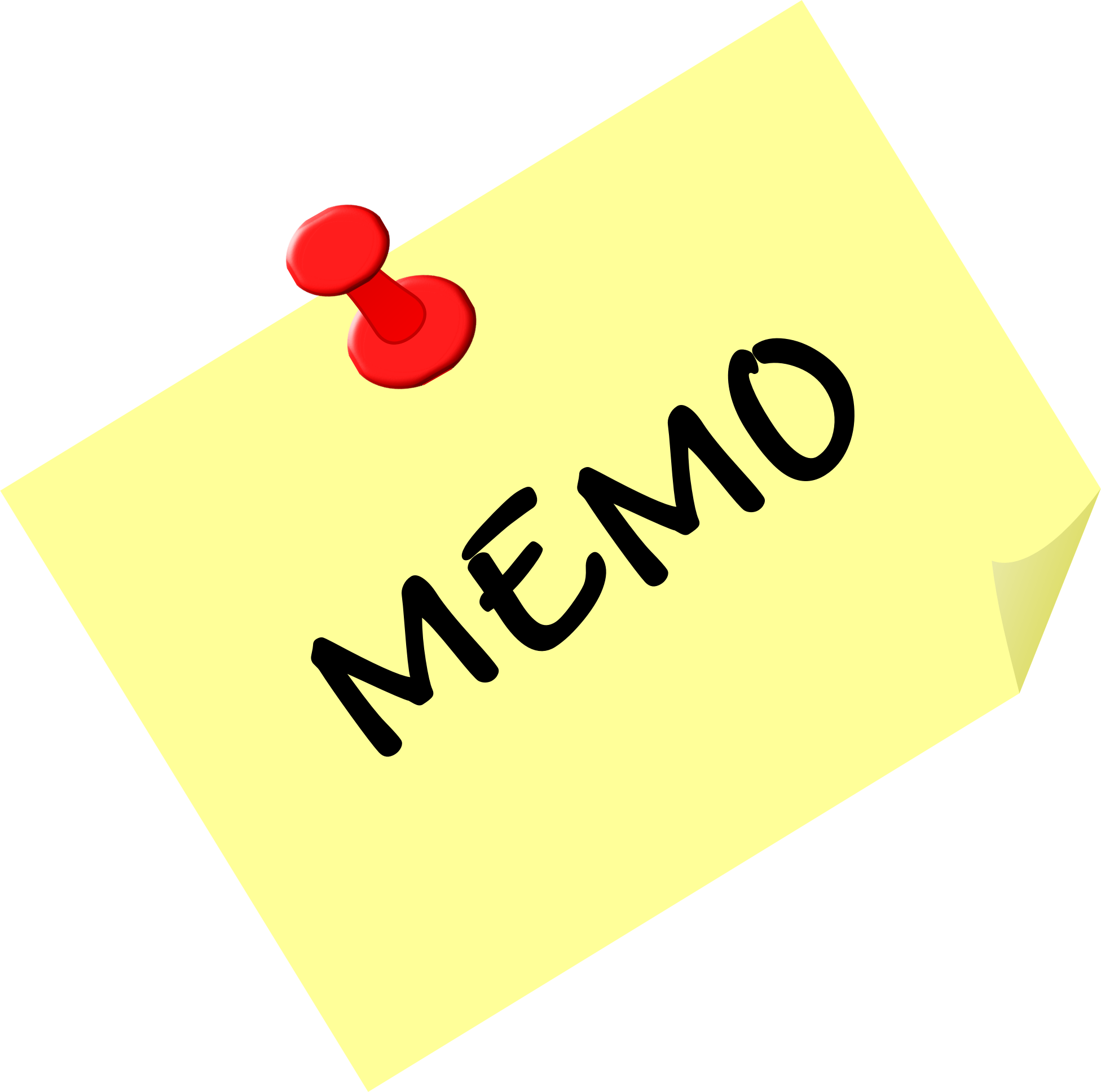"sticky note" with the word 'Memo' and a red push-pin