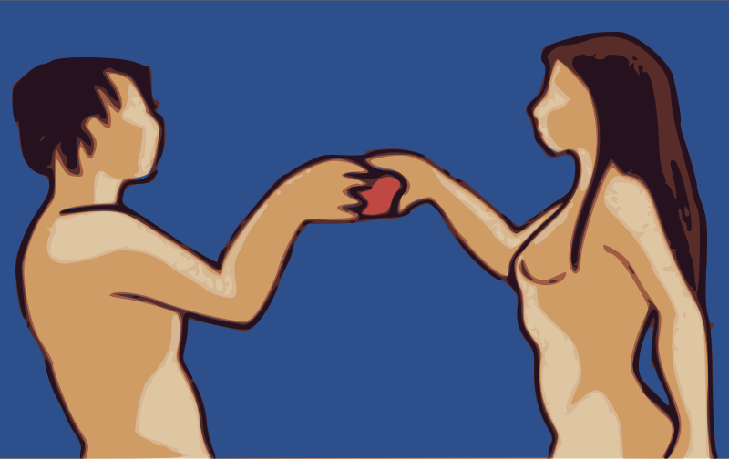 A very naked Adam and Eve derived from a public domain Faroe Islands stamp...