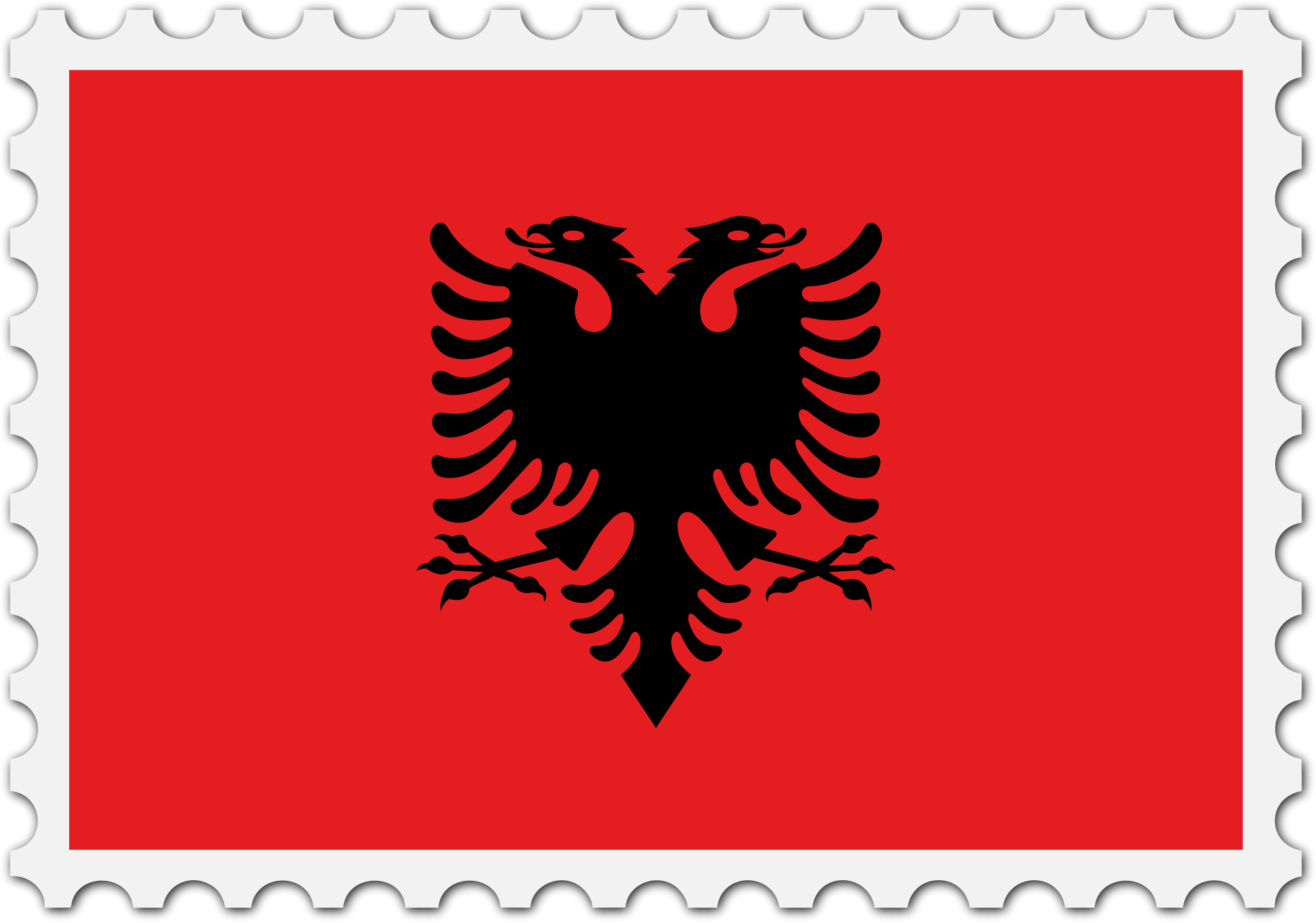 The national flag of Albania with a postage stamp border
