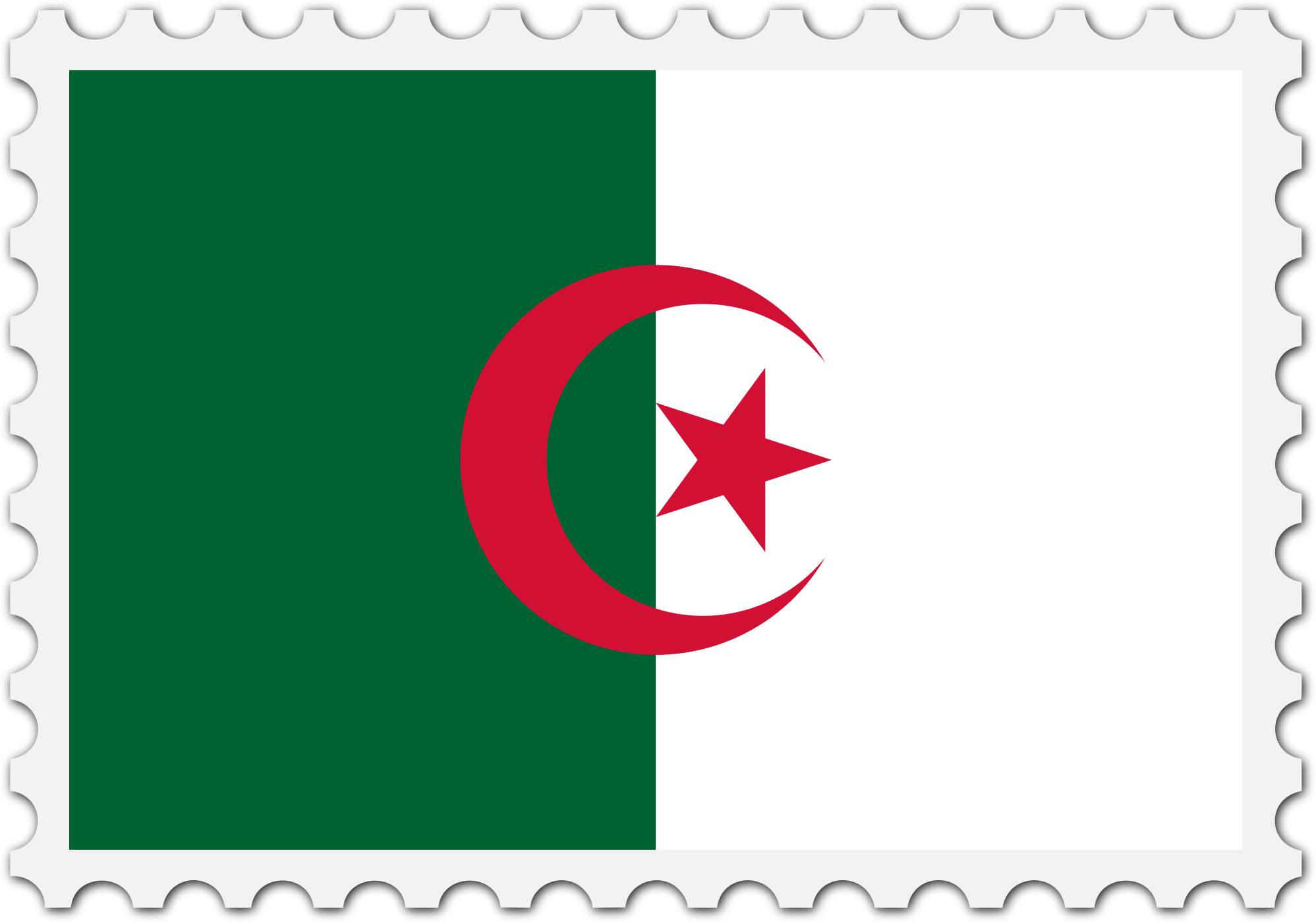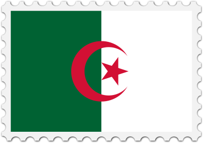 The national flag of Algeria with a postage stamp border