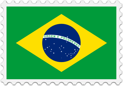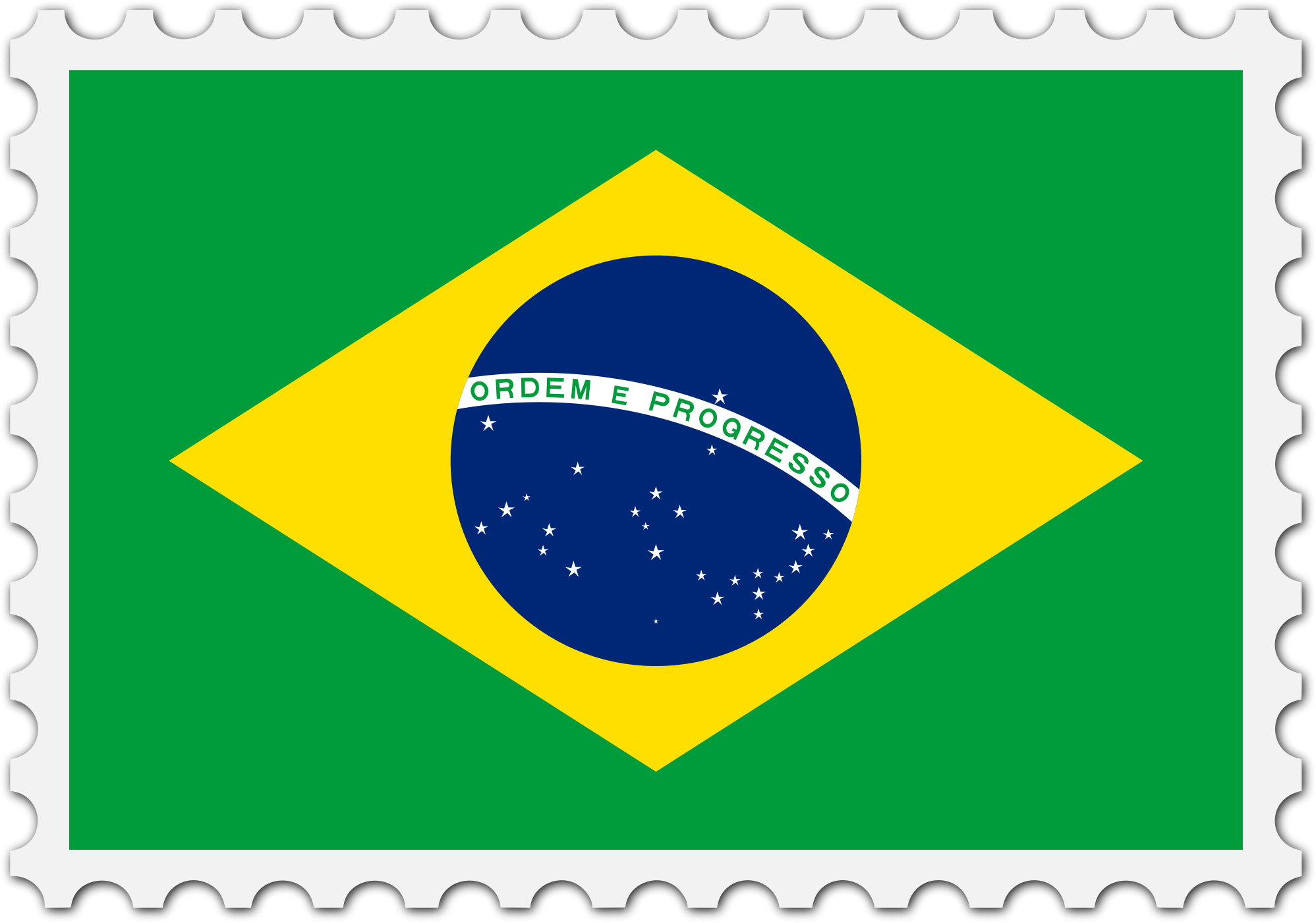 The national flag of Brazil with a postage stamp border