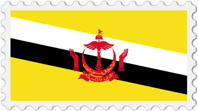 The national flag of Brunei with a postage stamp border