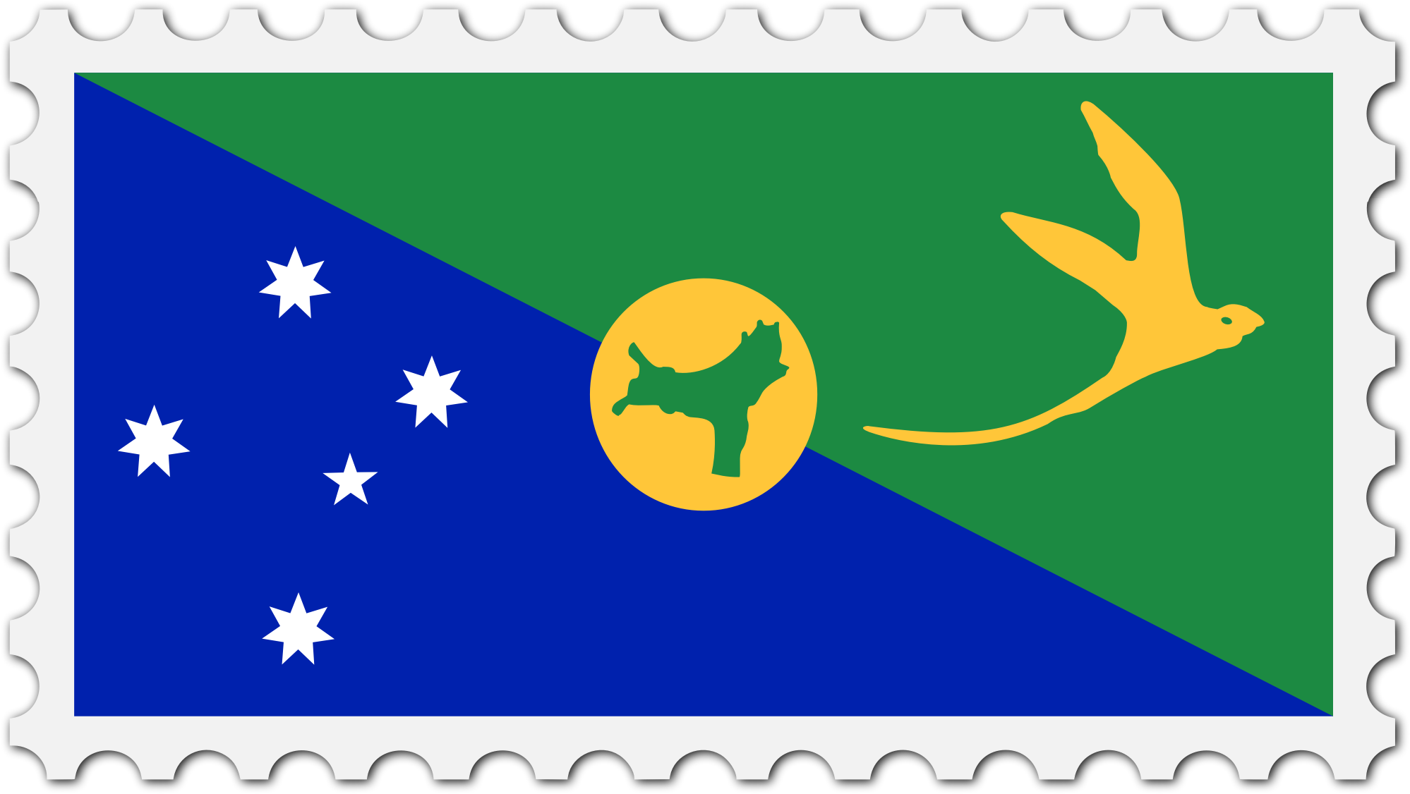 The national flag of Christmas Island with a postage stamp border