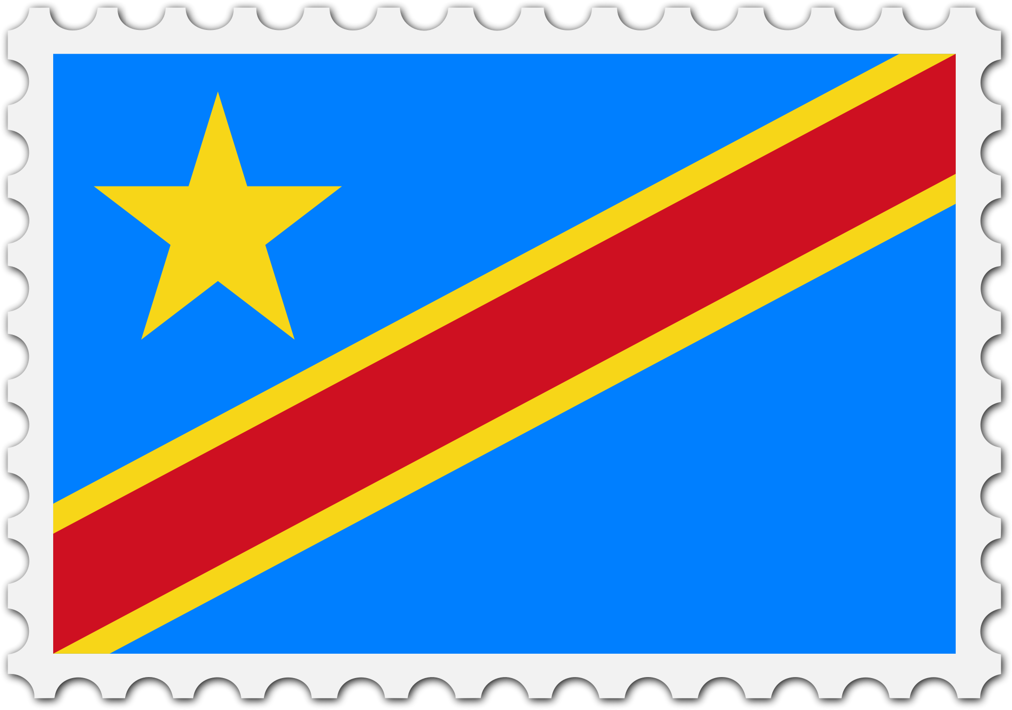 The national flag of Democratic Republic of the Congo with a postage stamp border