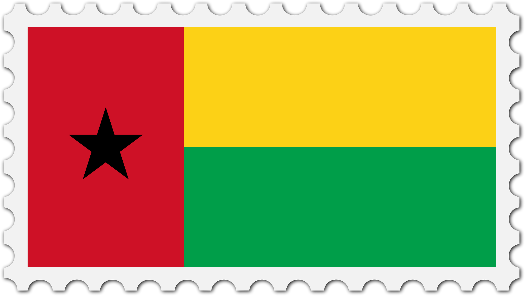 The national flag of Guinea Bissau with a postage stamp border