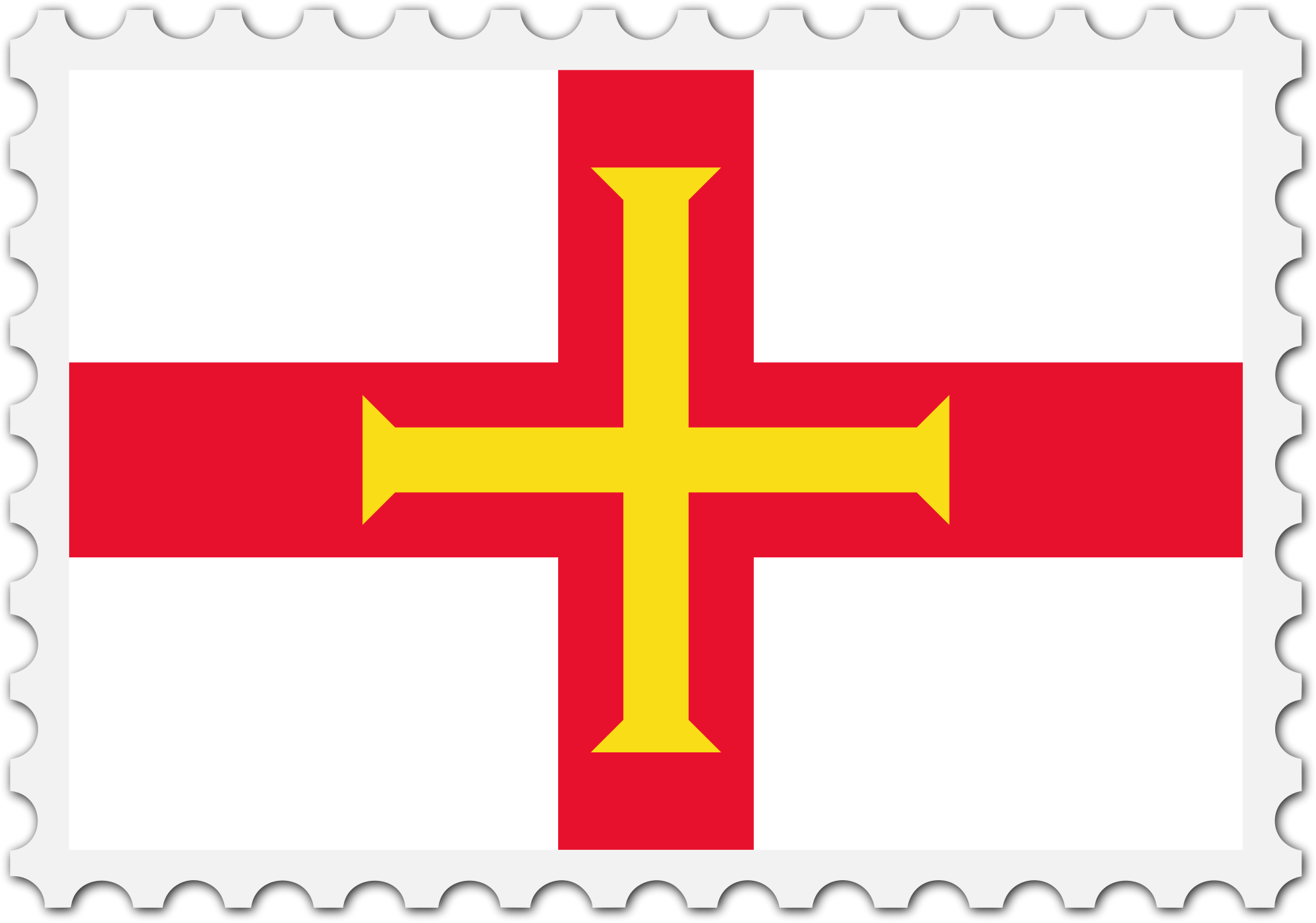 The national flag of Guernsey with a postage stamp border