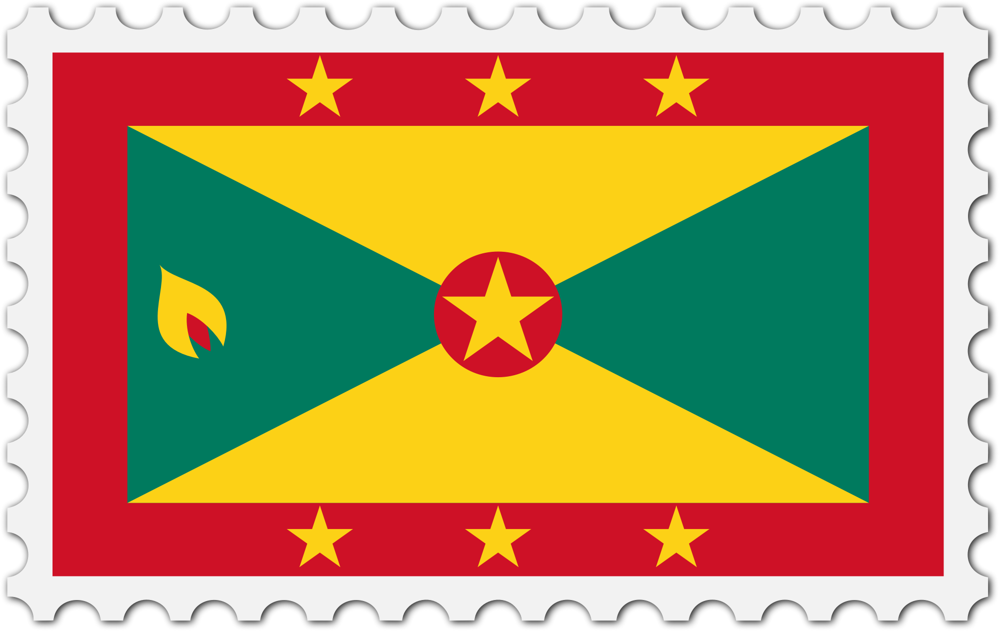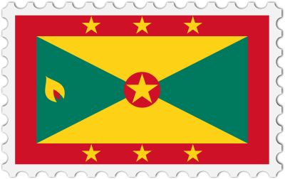 The national flag of Grenada with a postage stamp border