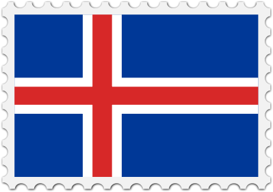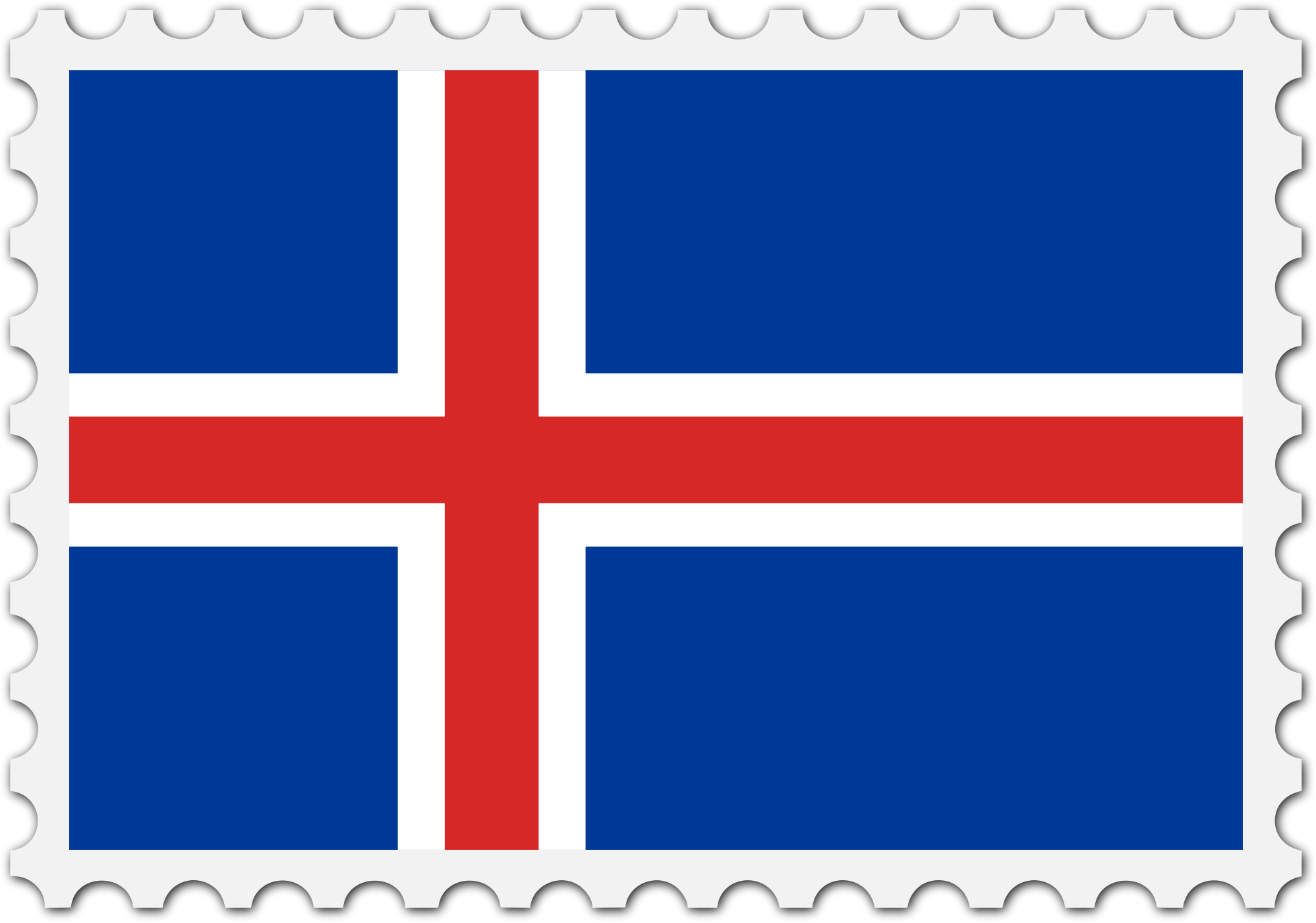 The national flag of Iceland with a postage stamp border