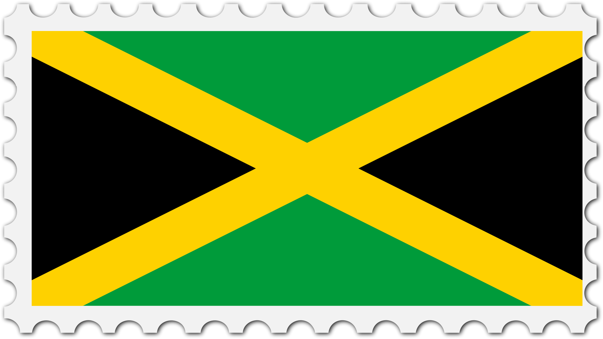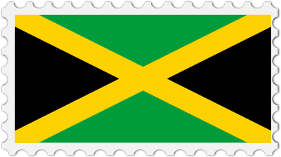 The national flag of Jamaica with a postage stamp border