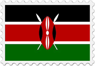 The national flag of Kenya with a postage stamp border
