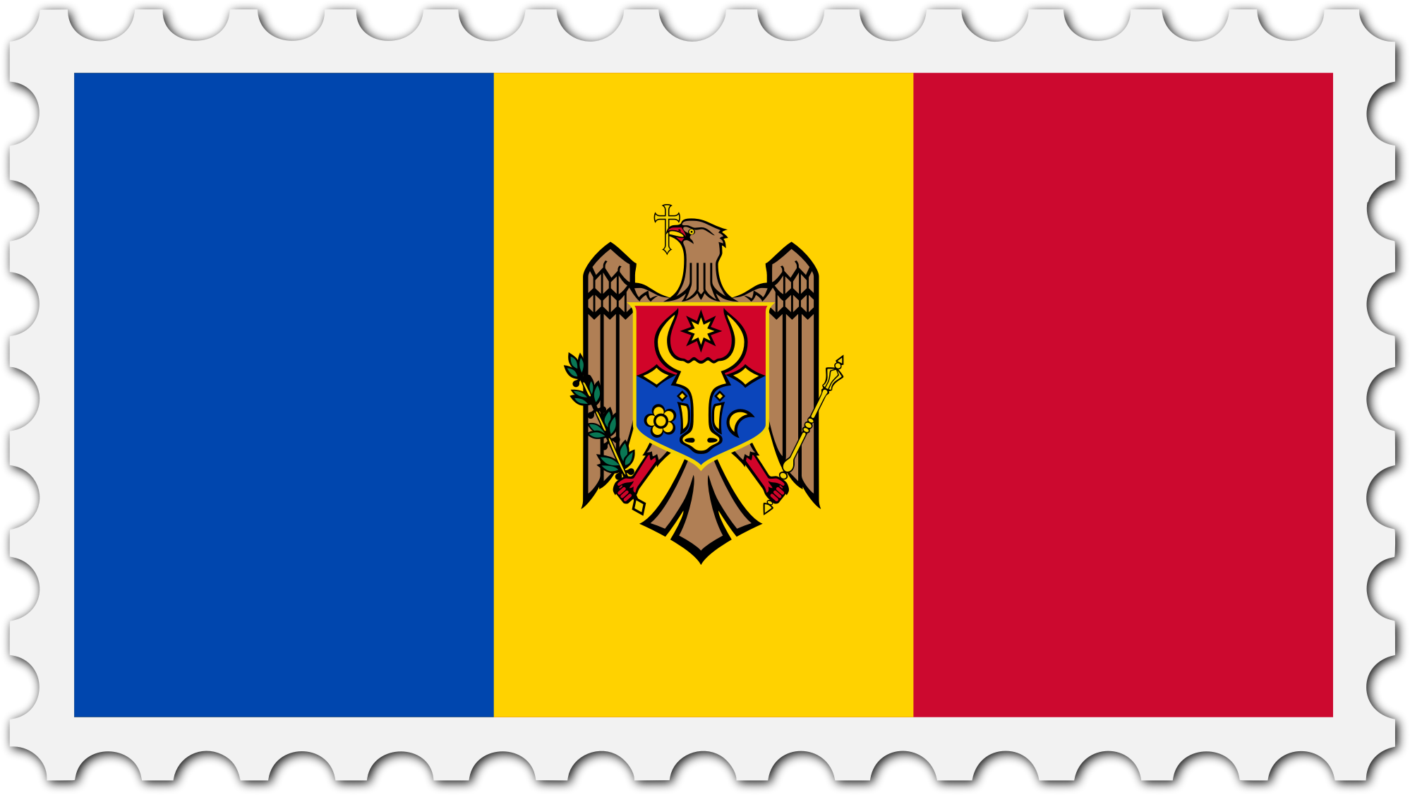 The national flag of Moldova with a postage stamp border