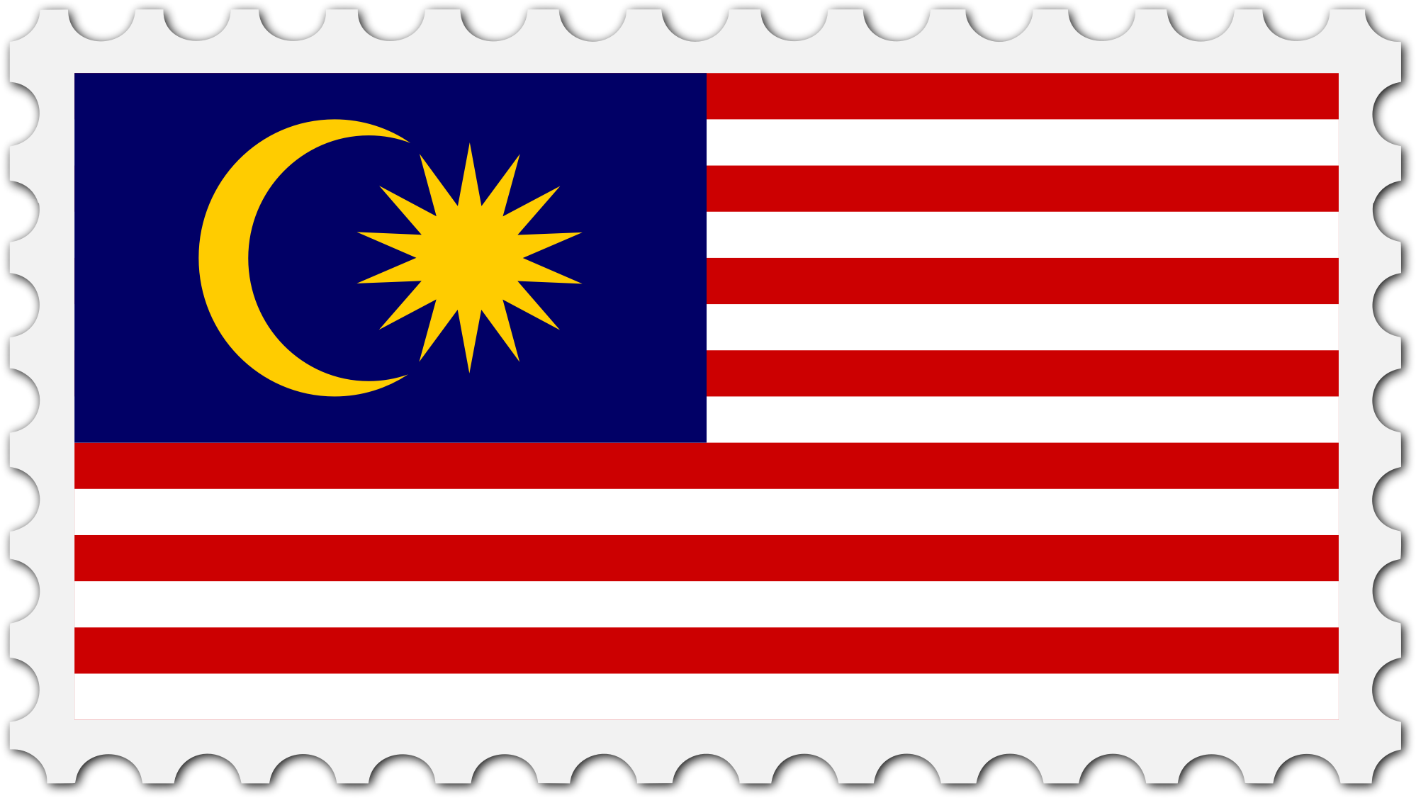 The national flag of Malaysia with a postage stamp border