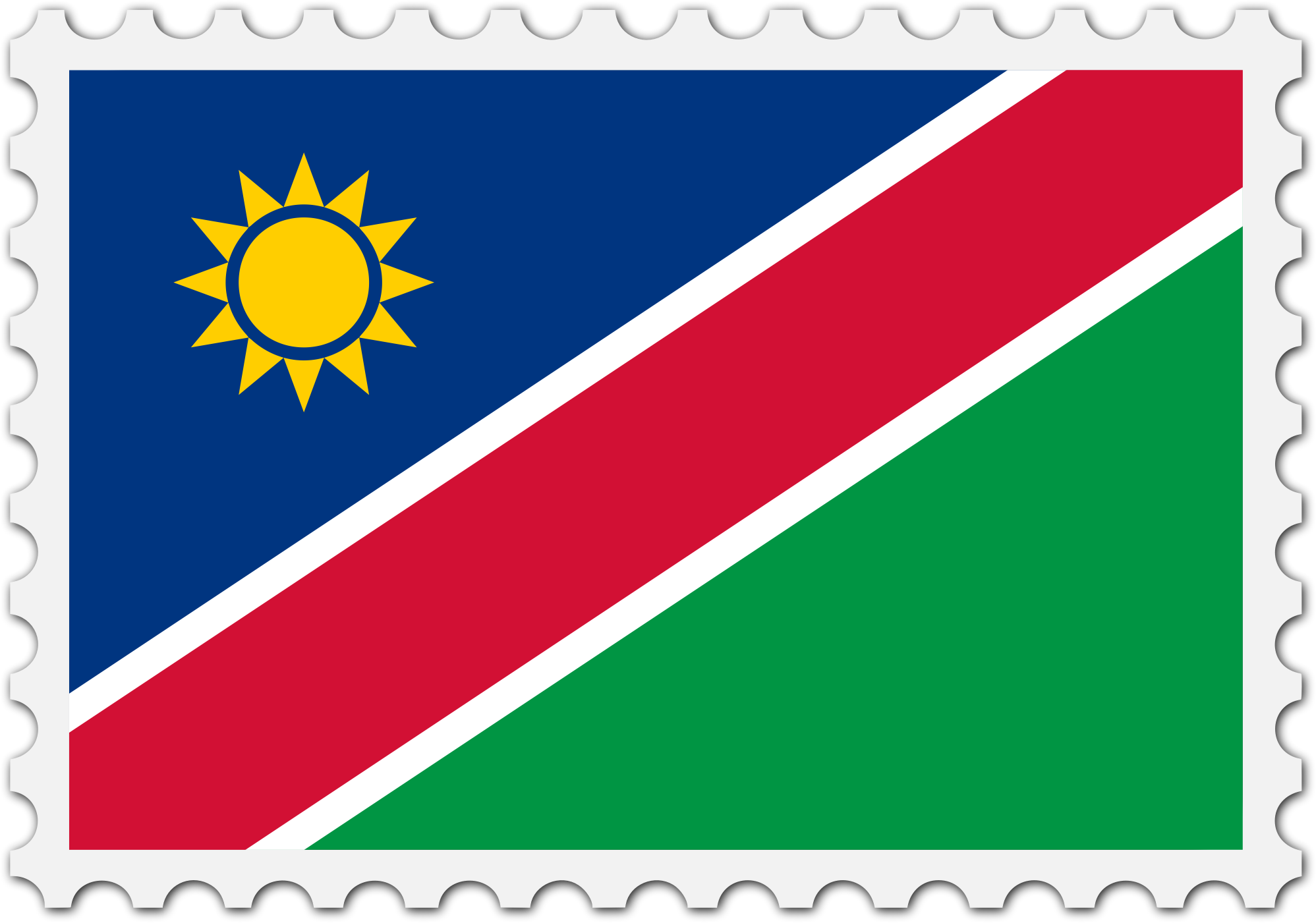 The national flag of Namibia with a postage stamp border