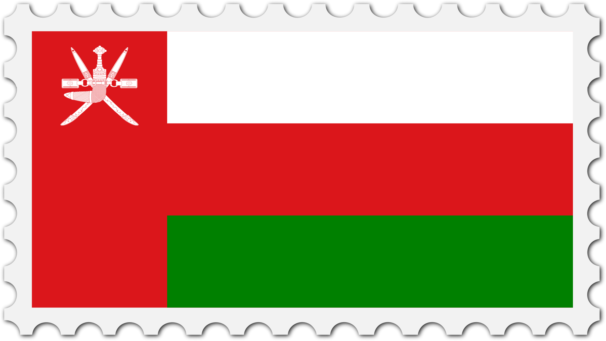 The national flag of Oman with a postage stamp border