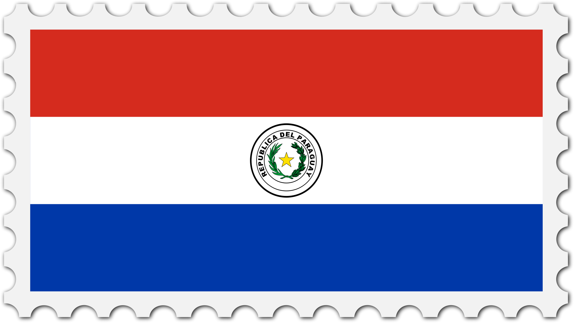 The national flag of Paraguay with a postage stamp border