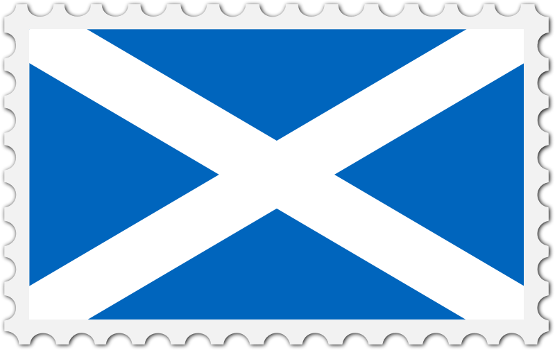The national flag of Scotland with a postage stamp border