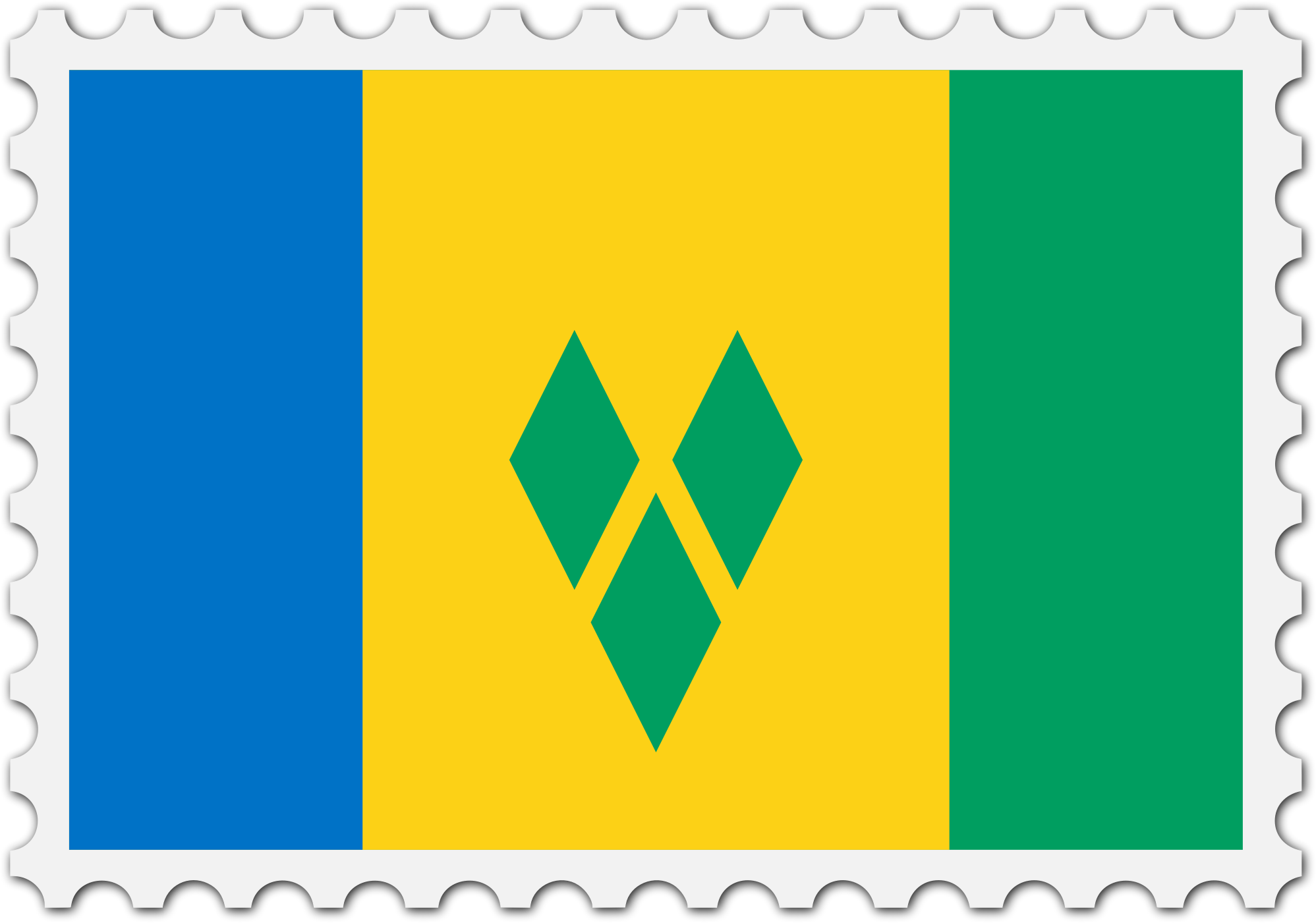 The national flag of Saint Vincent and the Grenadines with a postage stamp border