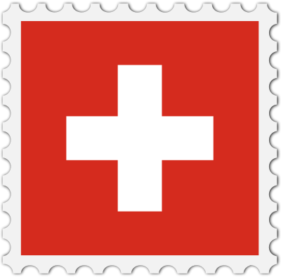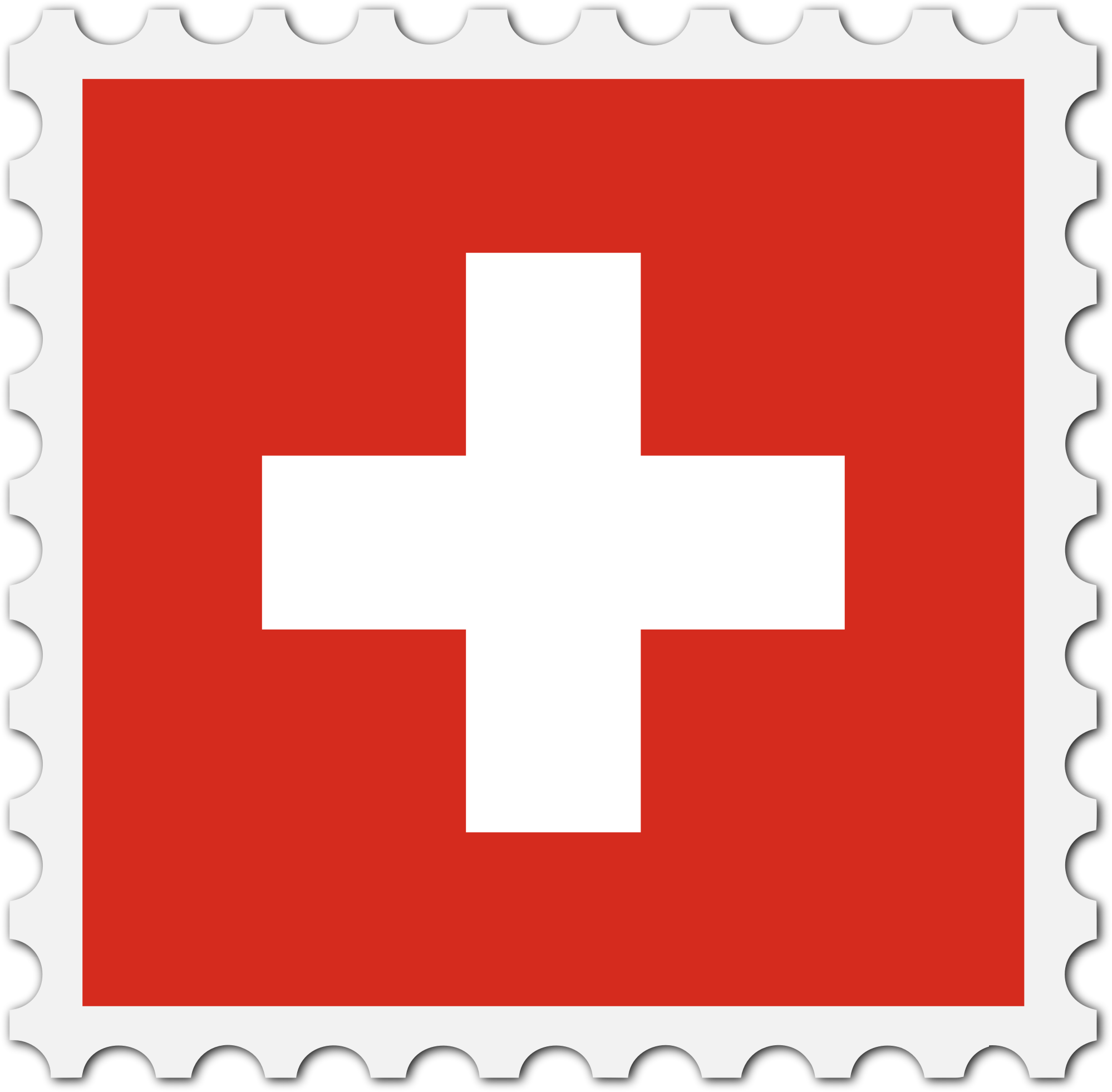 The national flag of Switzerland with a postage stamp border