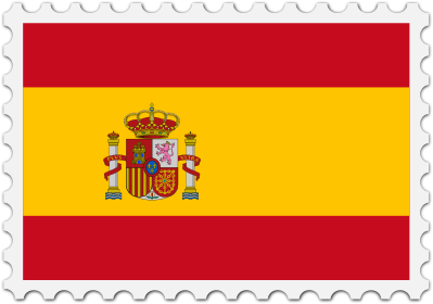 The national flag of Spain with a postage stamp border