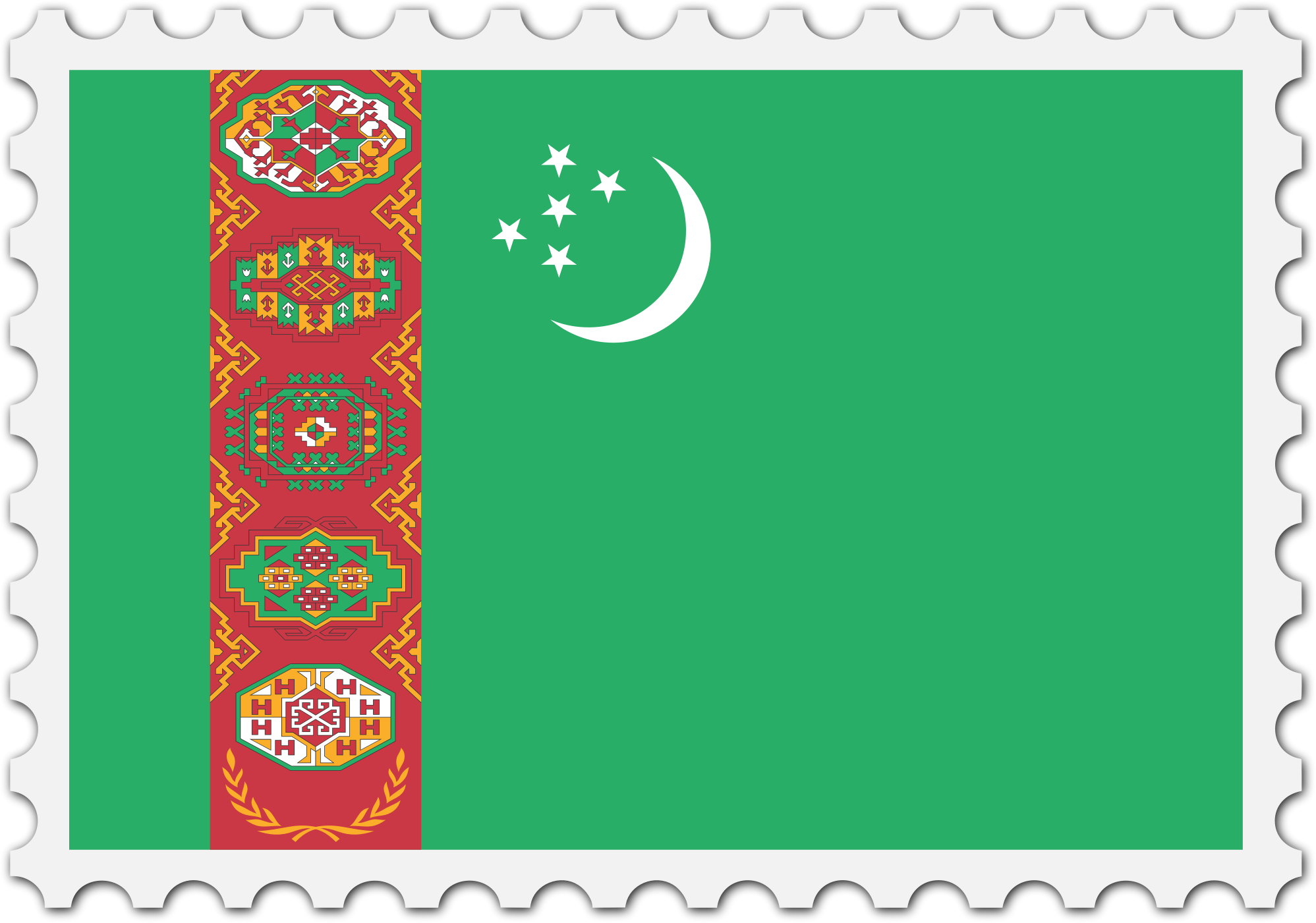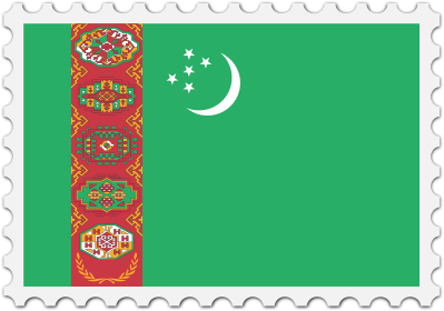 The national flag of Turkmenistan with a postage stamp border