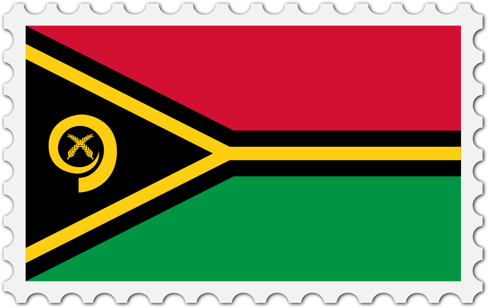 The national flag of Vanuatu with a postage stamp border