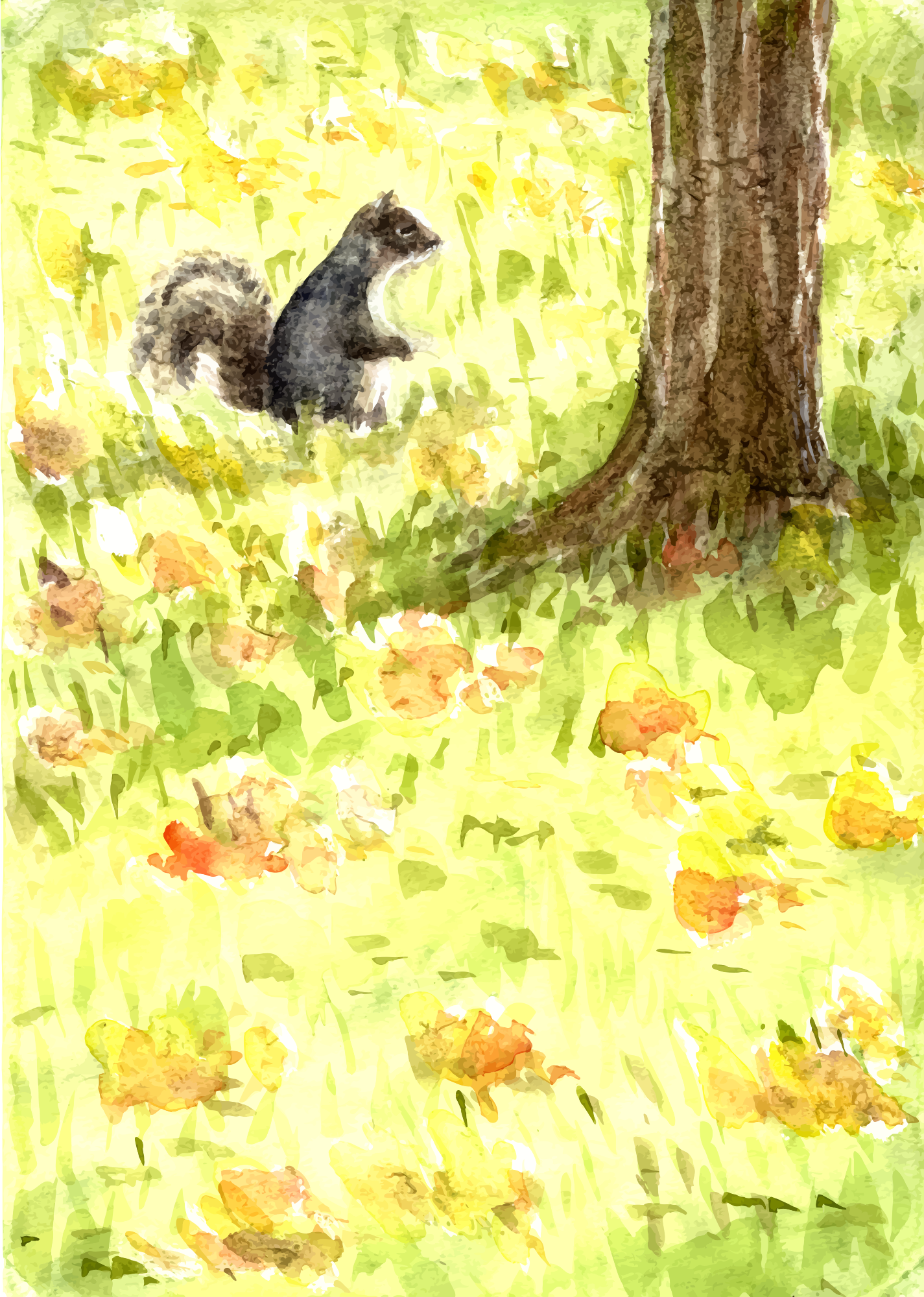 - remix+288393 squirrel mammal animal wood forest country countryside watercolour watercolor painting