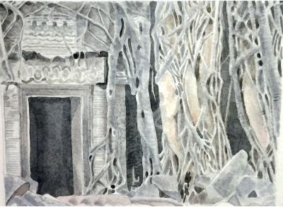 - remix+288411 architecture watercolour watercolor painting Buddha Buddhist Cambodia Cambodian monument religion religious temple