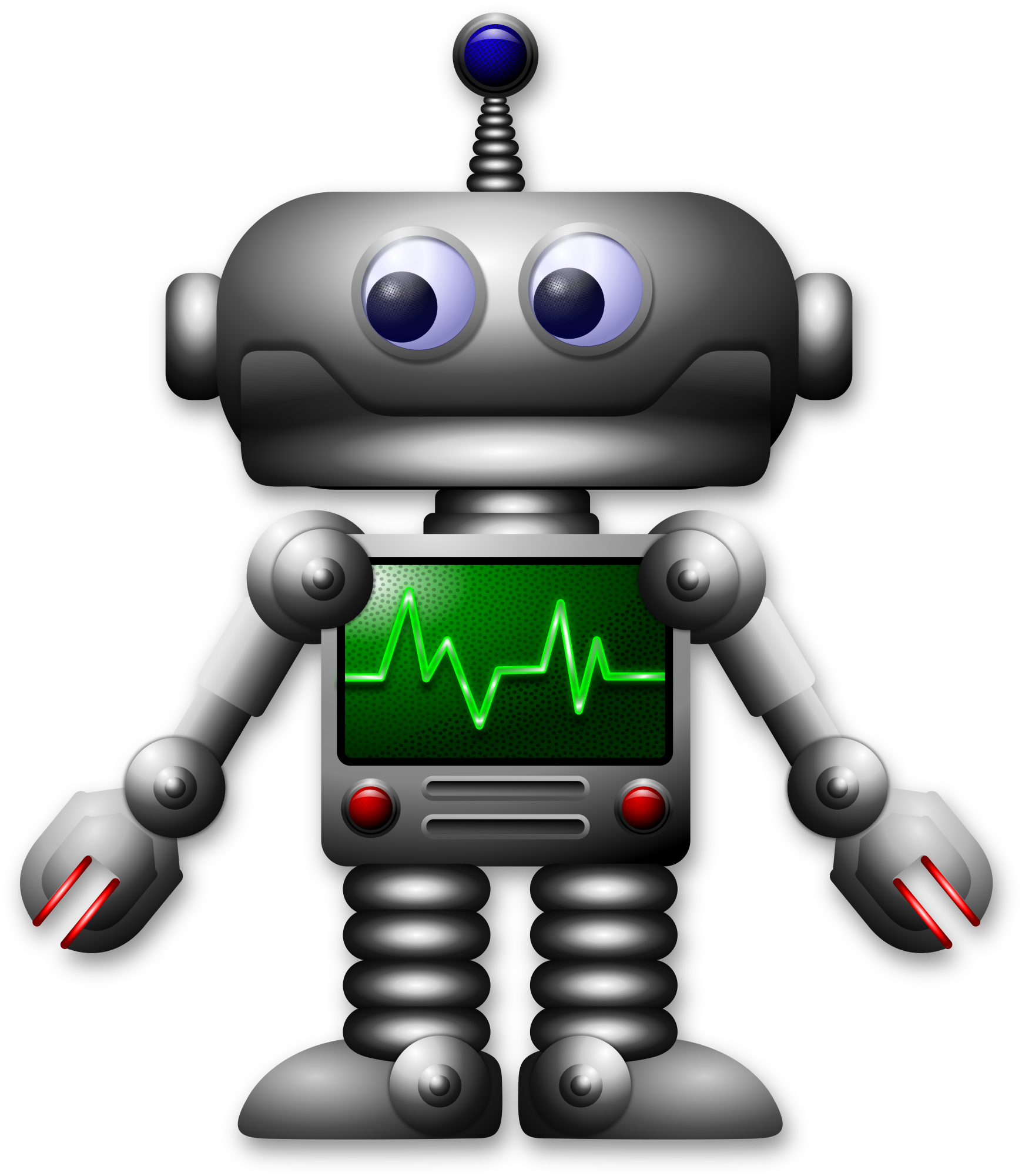 My remix of Sirrob01 cute cartoon Robot. Drawn with Inkscape. License: Public Domain.