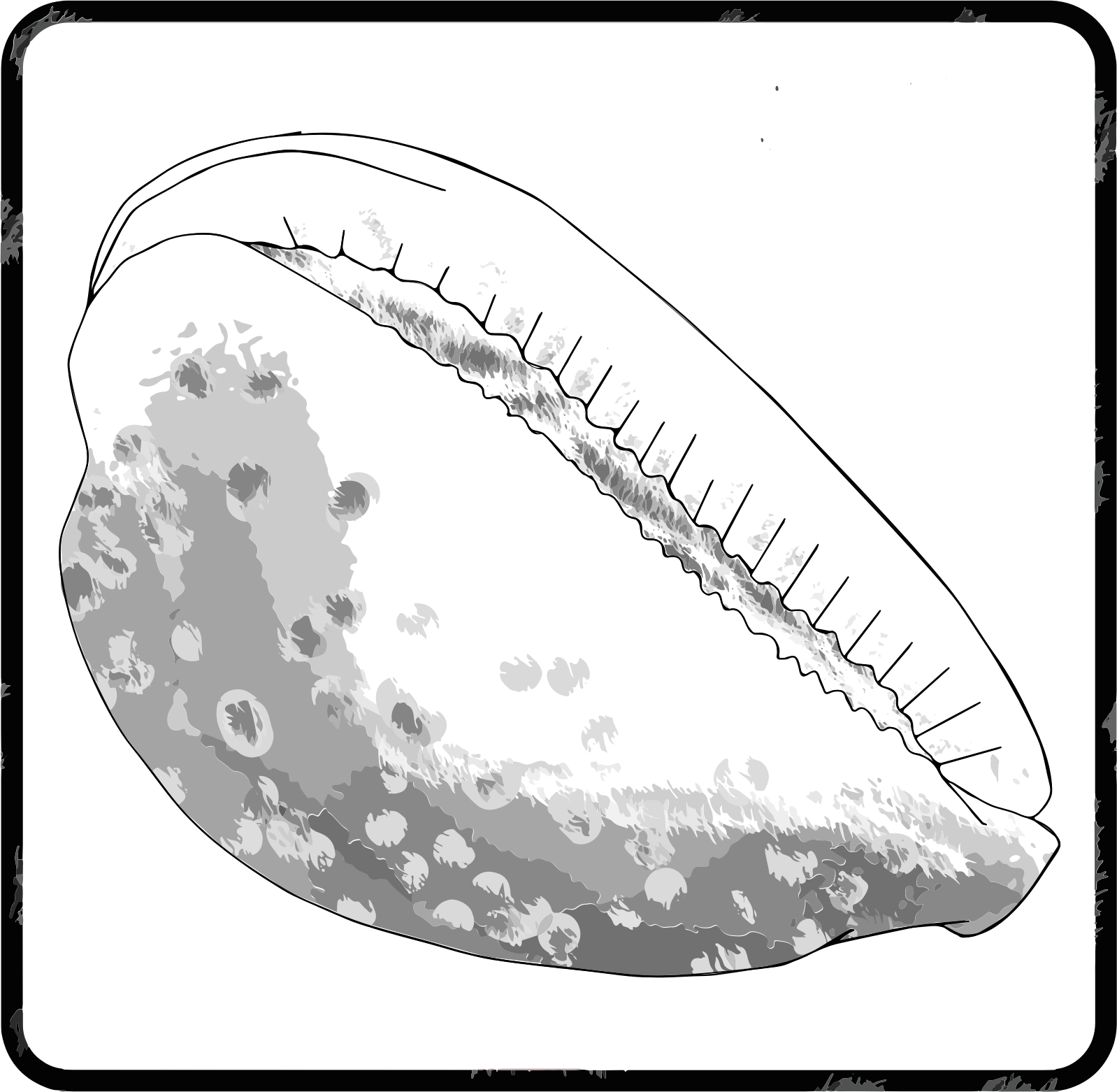A Sea snail shell in a black square