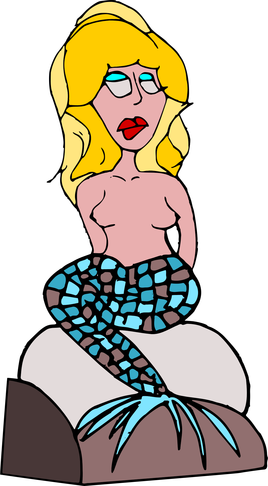 Mermaid sitting on rocks.