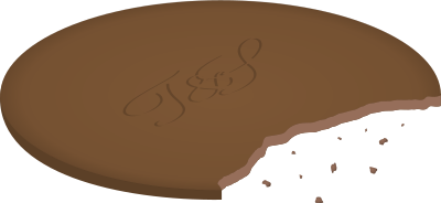 A flat round biscuit with a bite taken out.