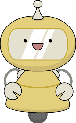 A cheerful, friendly-looking cartoon robot.
