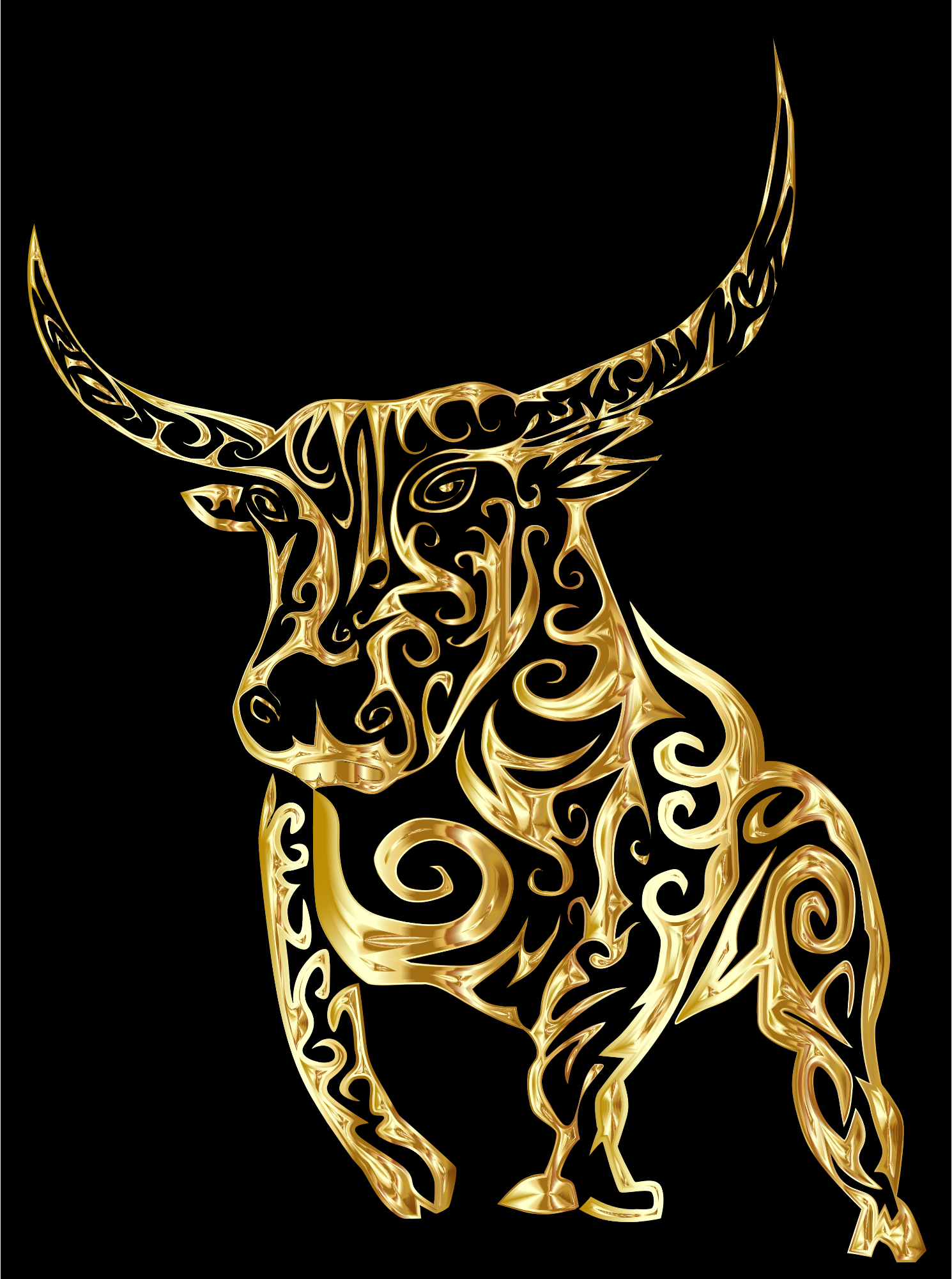 Tribal Bull Line Art Gold With Background