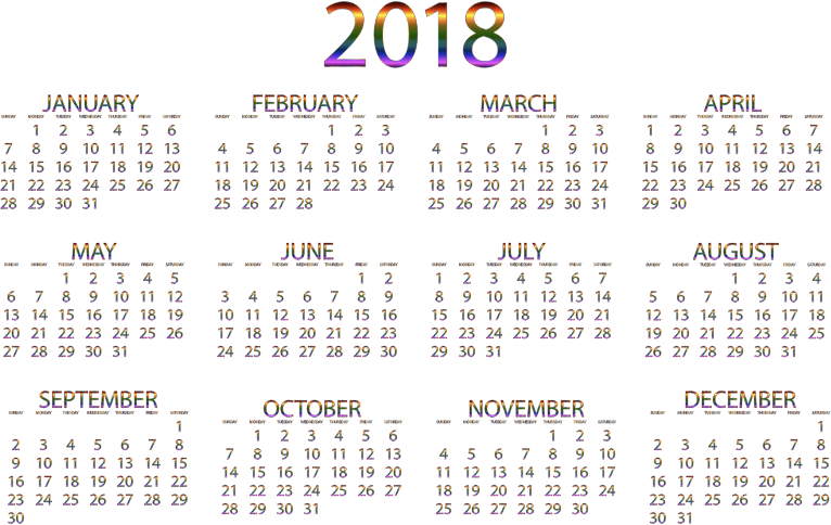 2018 Calendar Prismatic No Background